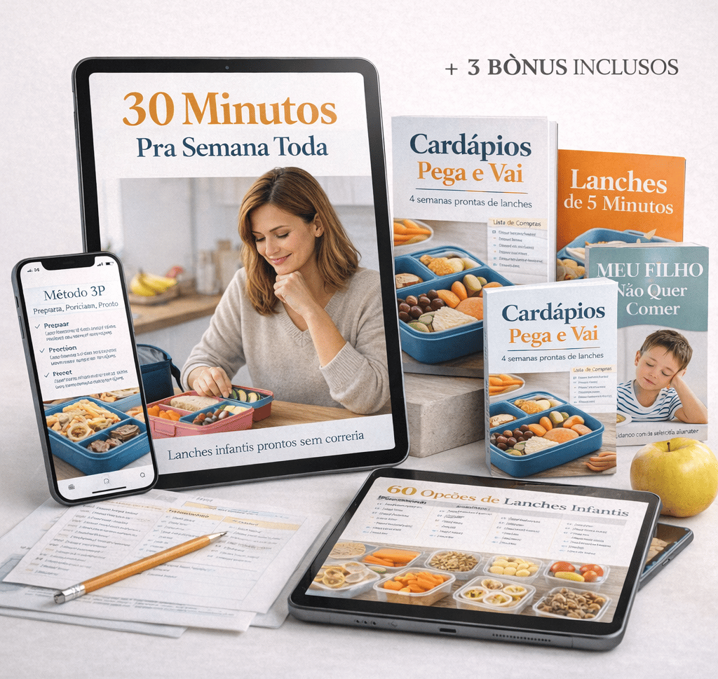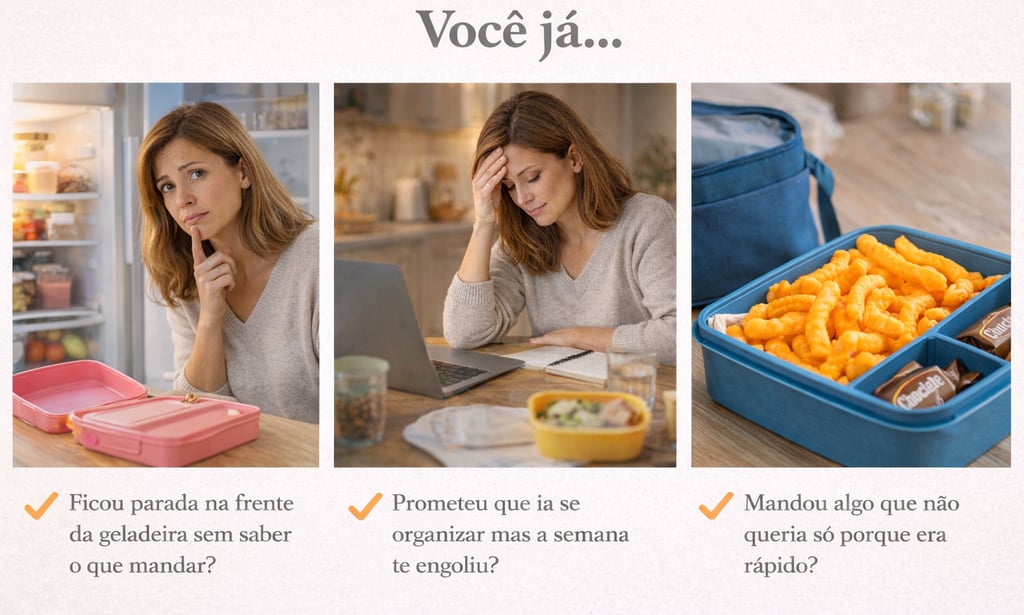 Não. A proposta do material é justamente organizar a semana com antecedência, reduzindo a correria diária e evitando decisões de última hora.