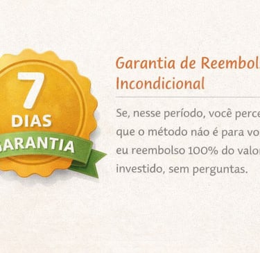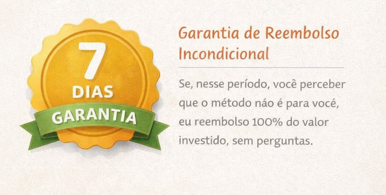 Você tem 7 dias de garantia. Se dentro desse prazo perceber que o material não é para você, pode solicitar o reembolso diretamente pela Hotmart, sem complicações.