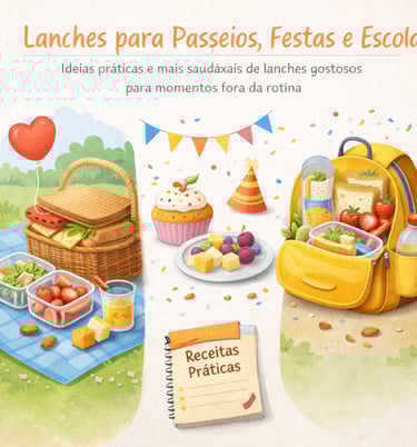 Receitas e ideias mais saudáveis de lanches para momentos fora da rotina, como passeios e festas escolares, com opções práticas, saborosas e possíveis para crianças.