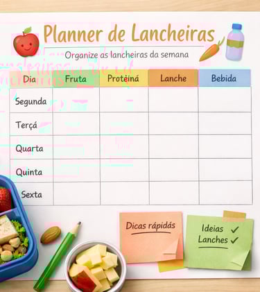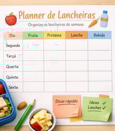 Um planner prático para organizar a lancheira da semana, visualizar as combinações e evitar a correria do dia a dia.